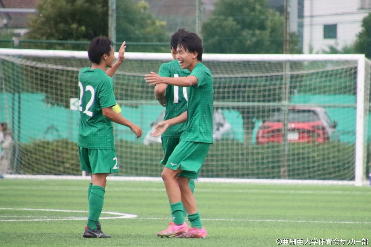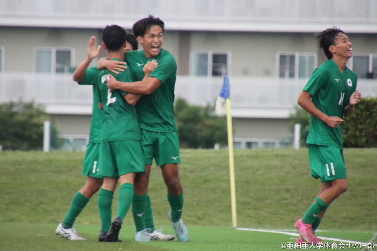リーグ戦再開後未だ勝利のない6位・作新学院大学は、対称的にリーグ再開後は2連勝と勢いに乗る8位・亜細亜大学と対戦。両チームの勝点差はわずか2。亜大が勝てば順位が入れ替わることもあり、立ち上がりから攻撃を仕掛けたのはアウェーの作新大だった。作新大は24分に左コーナーキックを獲得。濵田昂希のキックに高田湊人が頭で合わせて先制点を挙げる。その後も作新大が主導権を握るが追加点はなく0-1で前半を終えた。1点を追う亜大はハーフタイムに小野寺迅を投入。少しずつチャンスシーンを作り始めると70分にはコーナーキックからのこぼれ球を拾った大山比呂がゴール前に浮き球のパス。これを大石翔希が頭で合わせて亜大が試合を振り出しに戻した。同点に追いつかれた作新大は、その直後に3人を一気に交代。坂斉健人、林廉斗、渡部嶺斗をピッチに送り出して流れを変えようとするが、逆に76分に痛恨の失点。亜大は右サイドから攻撃を仕掛けると、山口流輝のクロスをファーサイドの矢崎晟洋が豪快に蹴り込んで追加点。2-1と逆転に成功した亜大が作新大の攻撃をしのぎきって3連勝。勝点を19に伸ばして6位に浮上。作新大は今節も勝利ならず7位に順位を下げた。