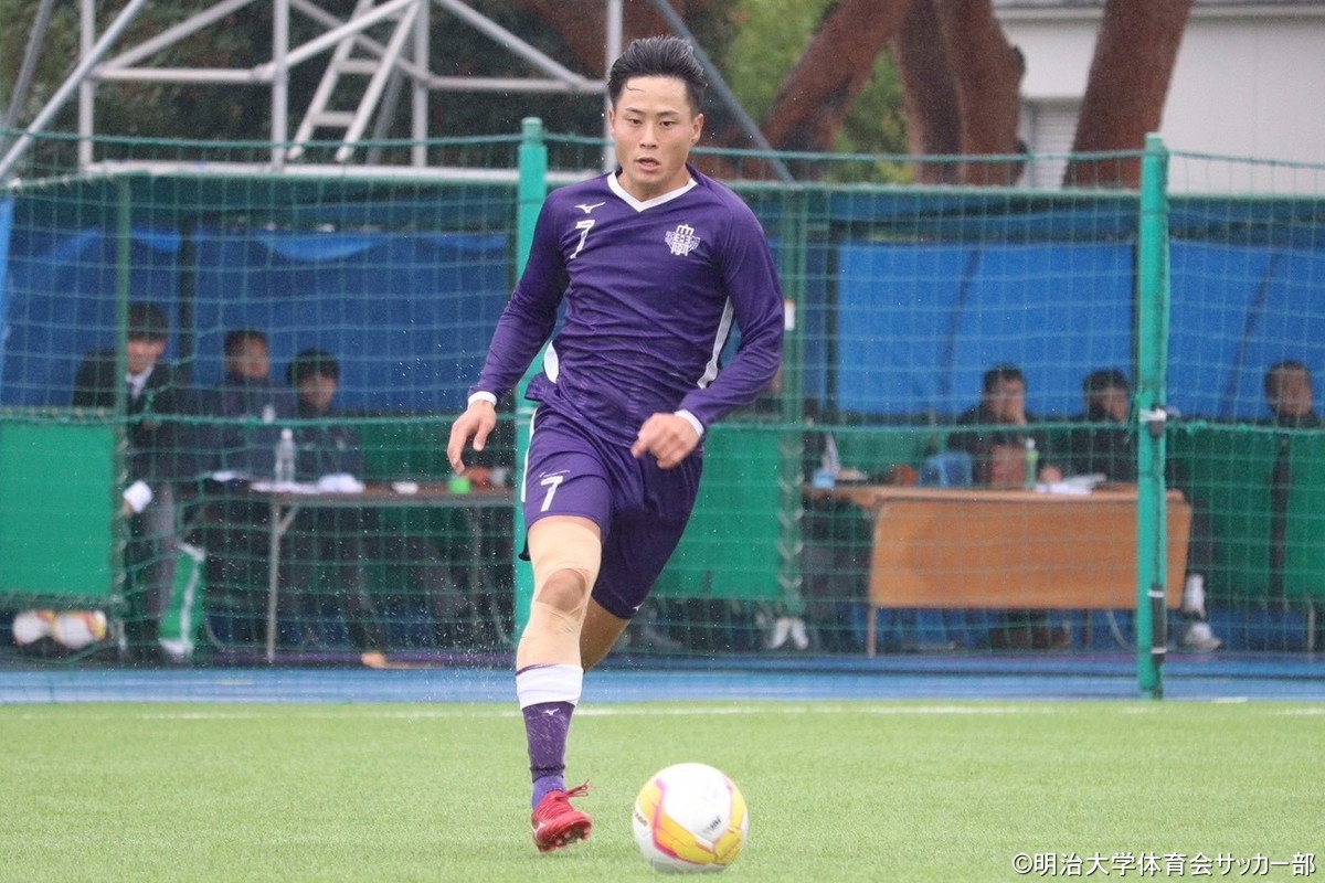 前節、7年ぶりの連敗を喫した3位・明治大学は3連敗中で9位に沈む東京国際大学と対戦。前半は両チームなかなかシュートまで持ち込めず、両チーム無得点のまま試合を折り返す。だが後半に入ると明大が少しずつ攻勢を強め、序盤の53分にはスローインを起点に鹿島内定・林晴己がゴール前にクロス。これはGKがキャッチしたかと思われたが、こぼれたボールを真鍋隼虎が拾い、そのまま蹴り込んで明大が先制点を挙げる。このまま畳みかけたい明大は真鍋を中心に何度となく東国大ゴールに攻め込むが、どうしてもゴールを割ることができない。それでも粘り強く攻撃を仕掛けると終了間際の89分、三品直哉の右コーナーキックを小澤晴樹が頭で合わせて追加点。試合は2-0のまま終了し、明大がクリーンシートで3試合ぶりの勝利。4位・日本体育大学との勝点差を3ポイントに広げるとともに、インカレ(2025年度 第74回 全日本大学サッカー選手権大会)出場に王手を掛けた。明大は次節の日本大学戦に勝利すればインカレ出場権を獲得となる。また敗れた東国大はこれで4連敗。11位の中央大学が勝利したため、9位から10位へ。降格圏に転落となった。